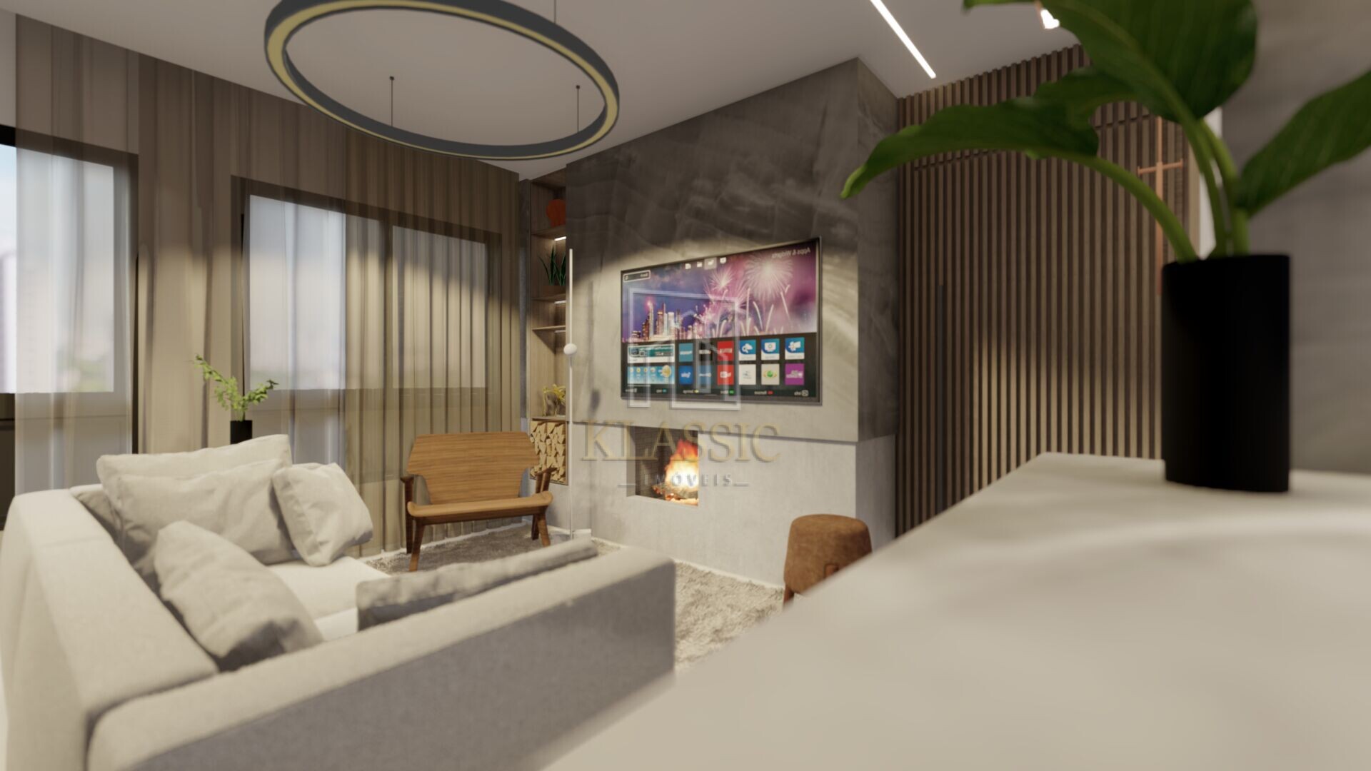 02 dormitórios, cozinha, sala de jantar e estar integradas, área de serviço, banheiro... Você vai curtir agradáveis momentos à beira da lareira, ou um delicioso almoço de domingo com a família reunida, no conforto do seu lar, com churrasqueira integrada ao ambiente social. Além dos excelentes espaços, o cuidadoso projeto arquitetônico propicia ventilação cruzada e permite a circulação do ar em todo o apartamento.