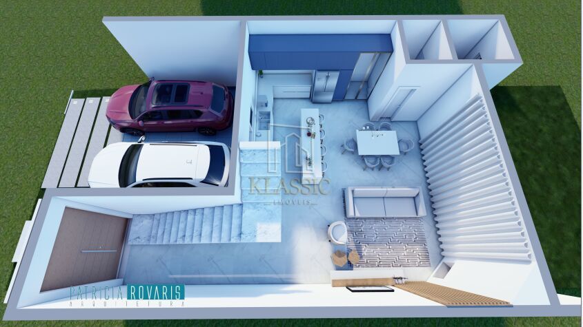 A garagem coberta para 2 carros complementa a praticidade do imóvel, que também se destaca pelo fino acabamento em todos os detalhes.
