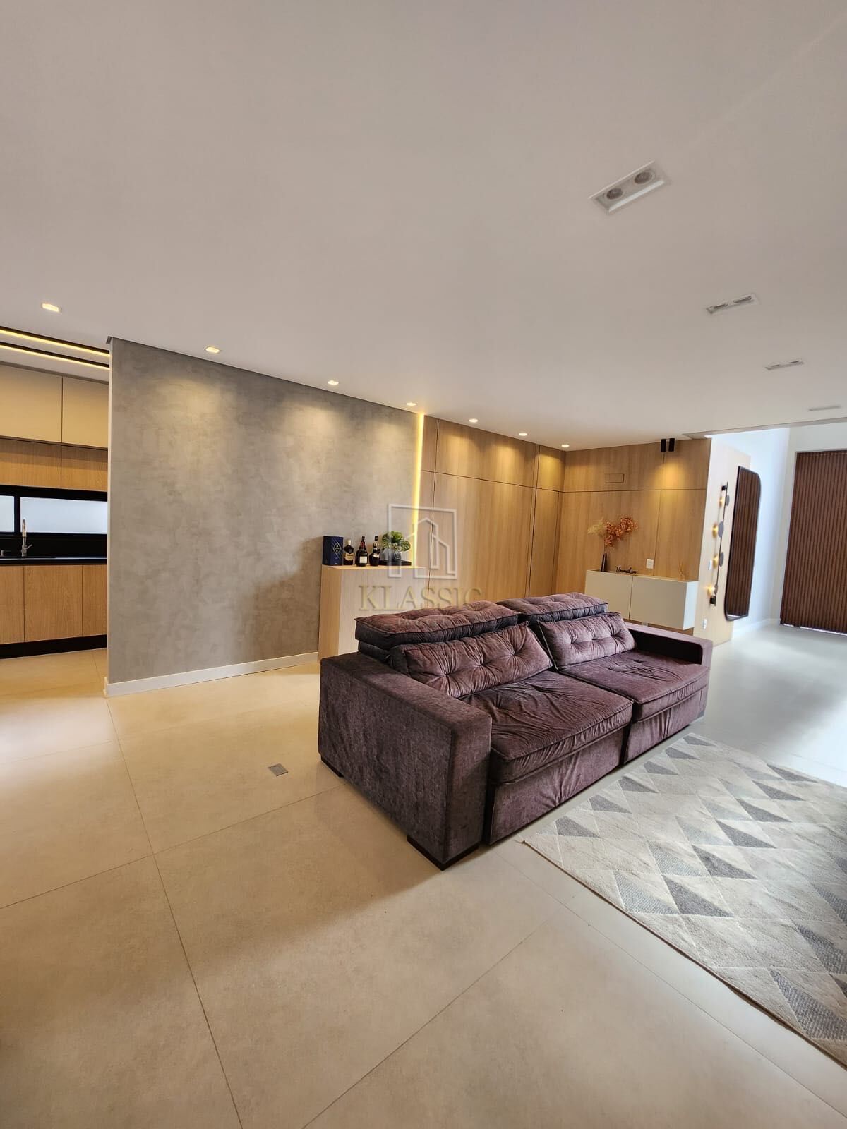O living totalmente integrado conecta hall de entrada, sala de estar, jantar e espaço gourmet, criando uma atmosfera moderna e acolhedora — perfeita para receber amigos e familiares.