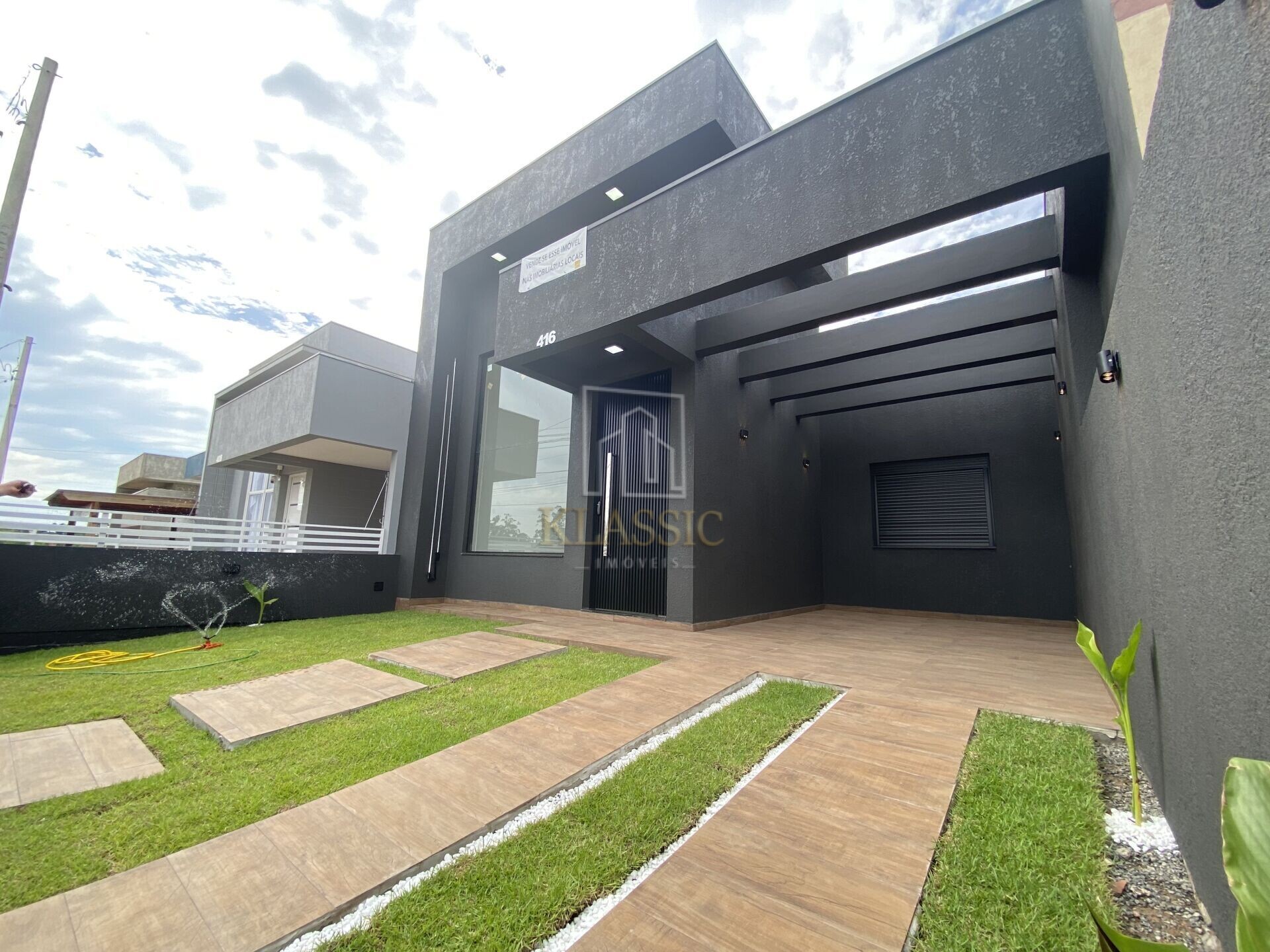o Imóvel possui espera para água quente, Piso Laminado nos dormitórios e Piso Porcelanato nas demais Areas, Aberturas em Alumínio, Fechadura da Porta digital com senha, Forro em Gesso já com um lindo Lustre instalado, Grade em frente a casa de Alumínio na cor preta , possuiu Pé Direito Duplo na sala de estar. Salas de estar e jantar integrados à cozinha, banheiro social, pátio nos fundos e garagem coberta com pergolado para 01 veículo, na Area dos fundos encontramos o espaço gourmet com pergolado.