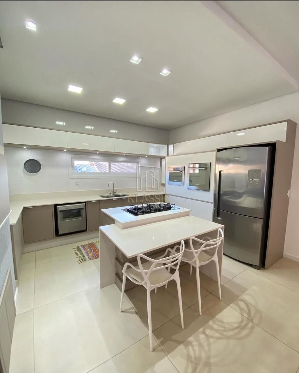 Cozinha completa, com ilha (Pedra Quartizo Branco com auto brilho - Top de linha)