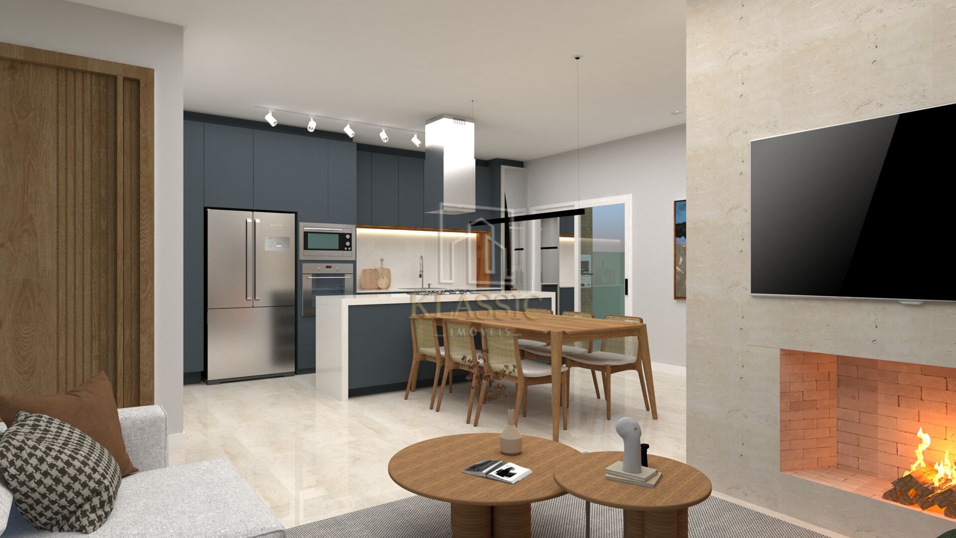 • Banheiro Social e Living Integrado: Ambientes pensados para otimizar a convivência e a praticidade do dia a dia.