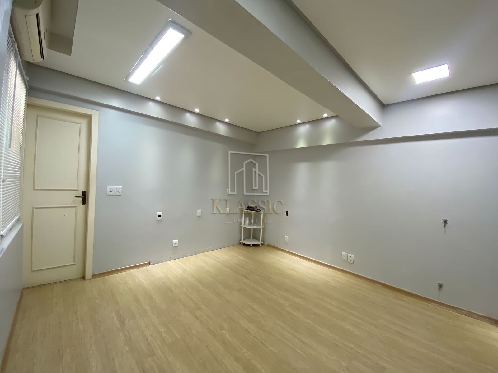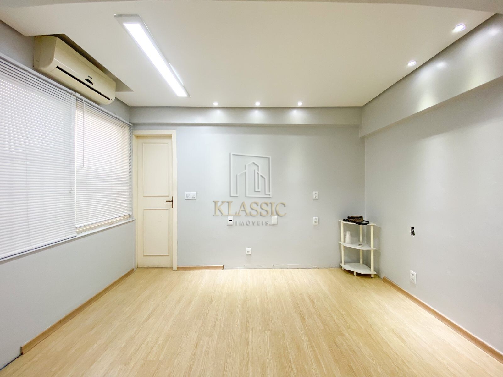 Possui 29m2, distribuidos em: Divisória da recepção, porta com grade, ar condicionado, banheiro social, piso laminado, gesso com iluminação de led, com sala ampla.